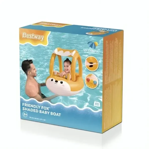 Découvrez le bateau renard gonflable Bestway pour les enfants de 3 ans et plus. Équipé d’un auvent, d’un hochet sensoriel, d’un vinyle résistant et d’un fond gonflable pour un confort et une sécurité optimaux, parfait pour les journées ensoleillées à la piscine ou à la plage.